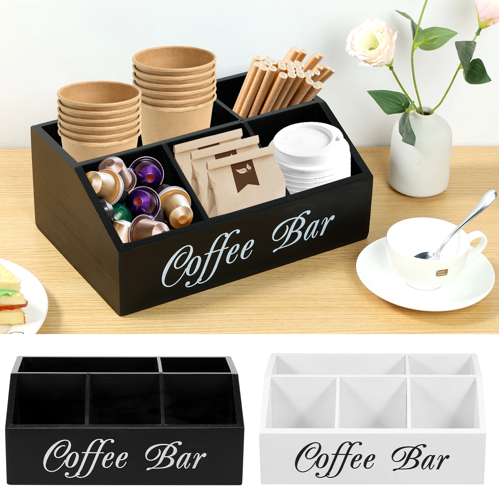Support à café en bois, organisateur de Bar à café, 5 compartiments, accessoires de Bar à café, Station de rangement de café Vintage, support de dosettes de café