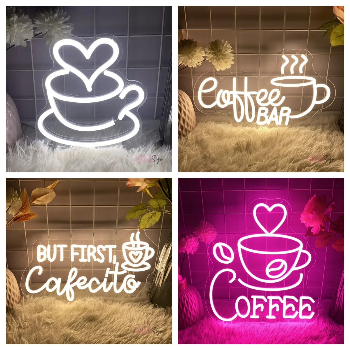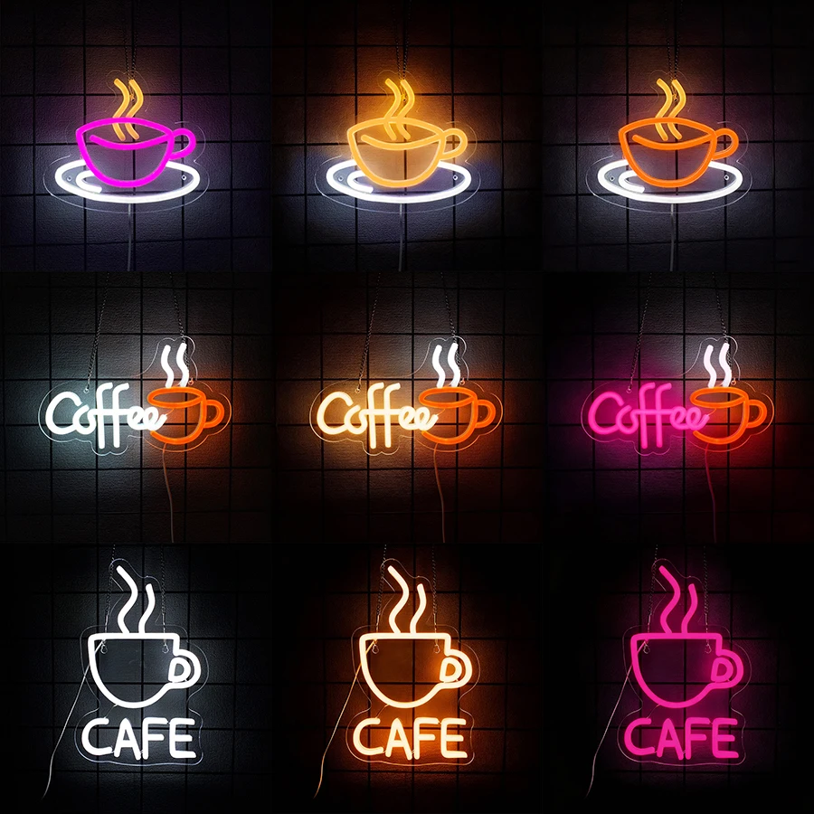 Enseigne néon café, lumière LED néon en forme de tasse à café pour décoration murale de bar à café, enseigne lumineuse pour station de café, café, cuisine, fête