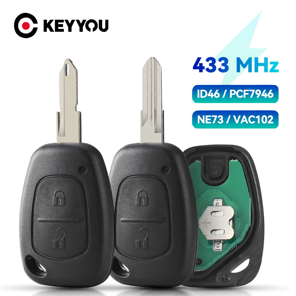 KEYYOU – Clé Télécommande à 2 Boutons pour Renault, Contrôleur de Circulation Vivaro Movano Kangoo, 33 MHz, Transpondeur ID46, Lame NE73 VAC102