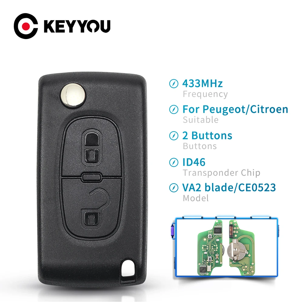 KEYYOU Clé À Distance Flip Clé De Voiture Pliante Pour Peugeot 307 207 107 308 3008 407 407 607 Citroen C2 C3 C4 C5 C6 C8 433MHz ID46 Puce