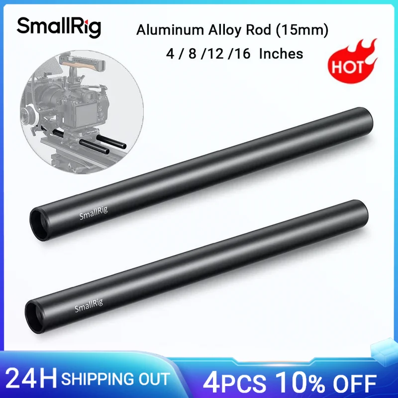 SmallRig Tige de 15 mm en alliage d'aluminium noir de 8 pouces (20 cm) avec filetage femelle M12, paquet de 2, 4/8/12/16 pouces