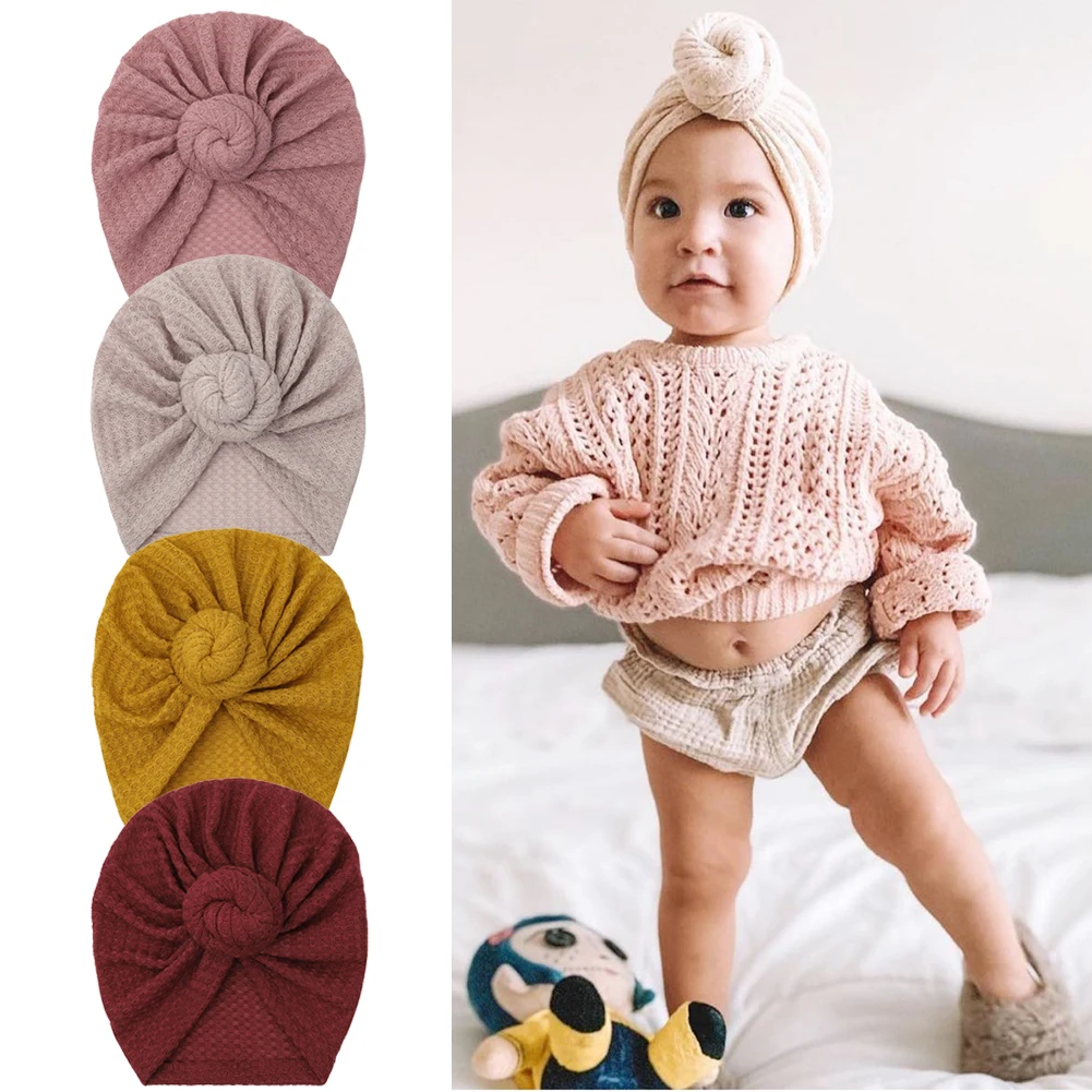 Nouveau solide gaufre Crochet tricot bébé chapeau 3M-5T Turban infantile enfant en bas âge nouveau-né bébé casquette Bonnet bonnets chapeaux pour bébé filles garçon