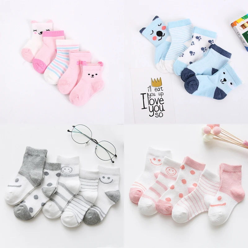 5 paires/lot bébé chaussettes pour nouveau-nés infantile mignon dessins animés doux coton chaussettes été 0-24 mois garçon fille belle maille enfants cadeau
