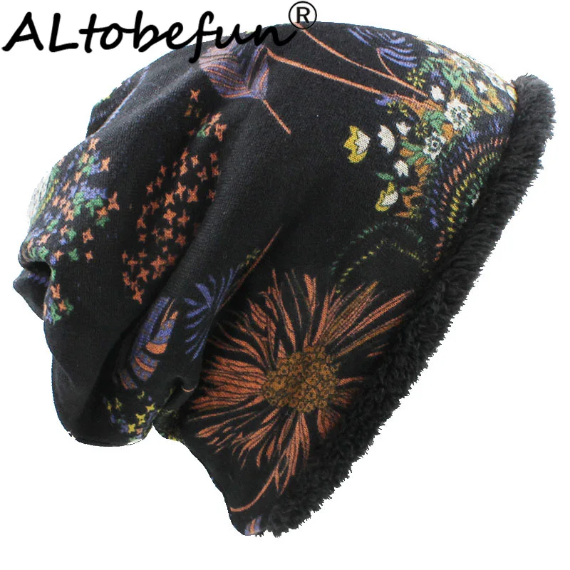 ALTOBEFUN fille écharpe chaude femmes Skullies bonnets marque de mode automne hiver Vintage Design double usage chapeaux pour dames BHT058