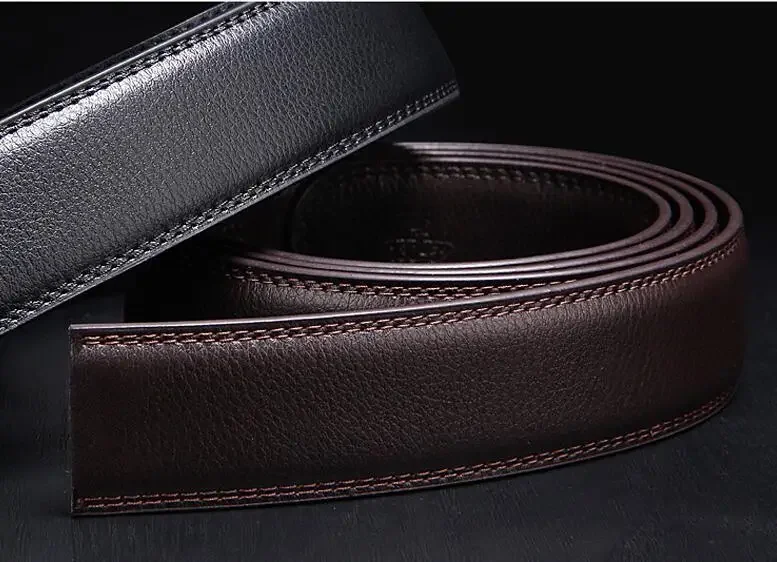Ceintures de styliste sans boucle pour hommes, corps de 3.5cm de large, en croûte de cuir, accessoires de ceinture automatique de haute qualité, 125cm 140cm