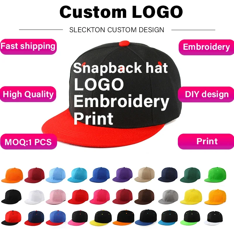 SLECKTON Logo personnalisé casquettes mode Hip Hop Snapback chapeaux pour femmes et hommes bricolage lettre broderie conception Image impression chapeau en gros