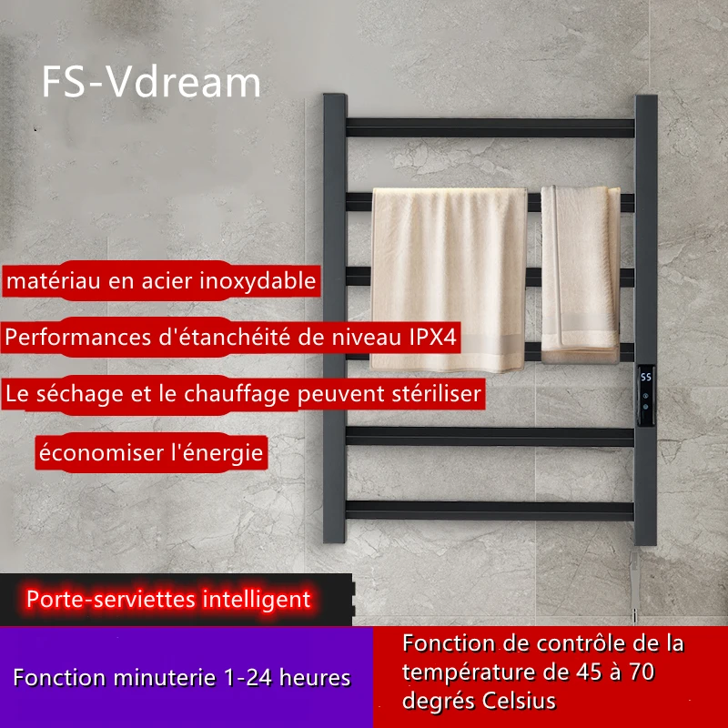 Équipement de salle de bain Porte-serviettes électrique en acier inoxydable Contrôle de la température et du temps Maison intelligente Sèche-serviettes chauffant Sèche-serviettes 009