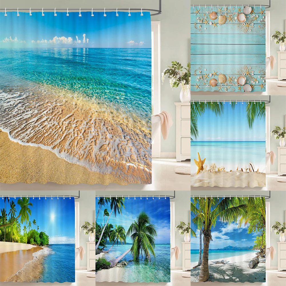 Rideaux de douche de paysage de plage 3D, rideau de bain, décoration de gril imperméable, mer, océan, méditerranéen, 180x240cm