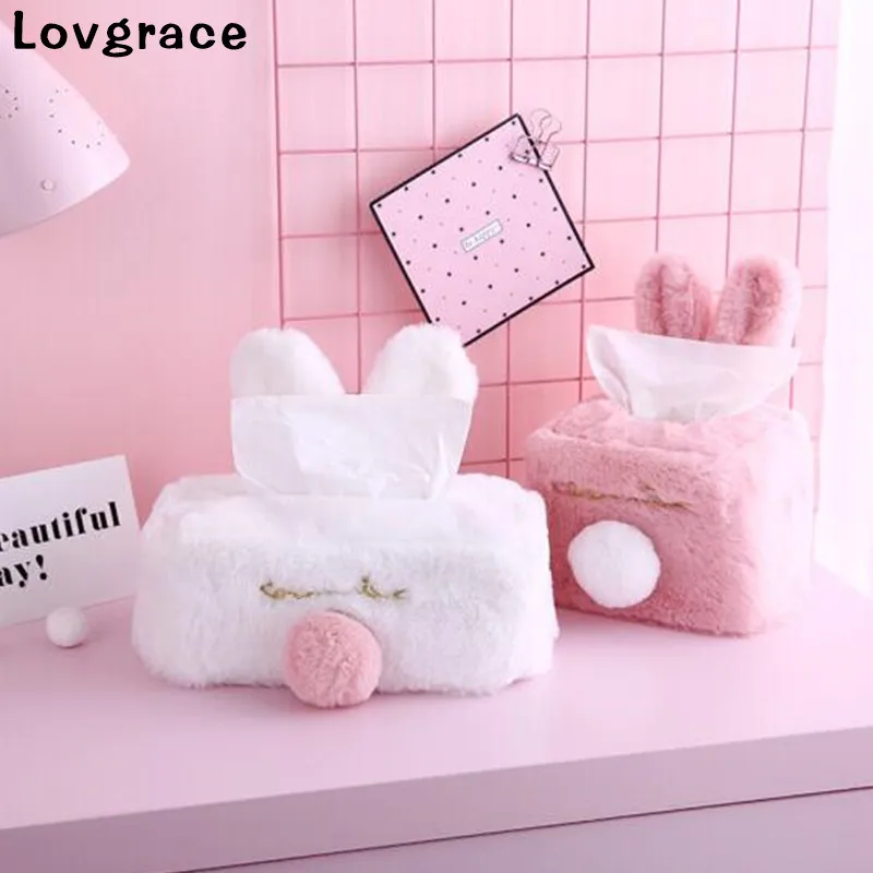 Boîte à mouchoirs en forme de lapin en peluche, couleur douce, rose et blanc, Durable, pour maison, voiture, hôtel, canapé, porte-papier, étui pour serviettes, pochette, cadeau pour fille