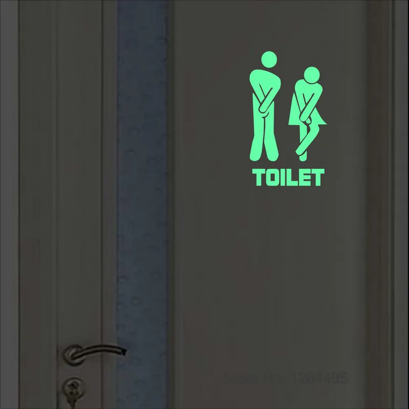 Autocollant de toilette lumineux drôle, autocollant de dessin animé qui brille dans la nuit, signe de porte de salle de bains, étiquette indicateur murale de WC, DIY bricolage