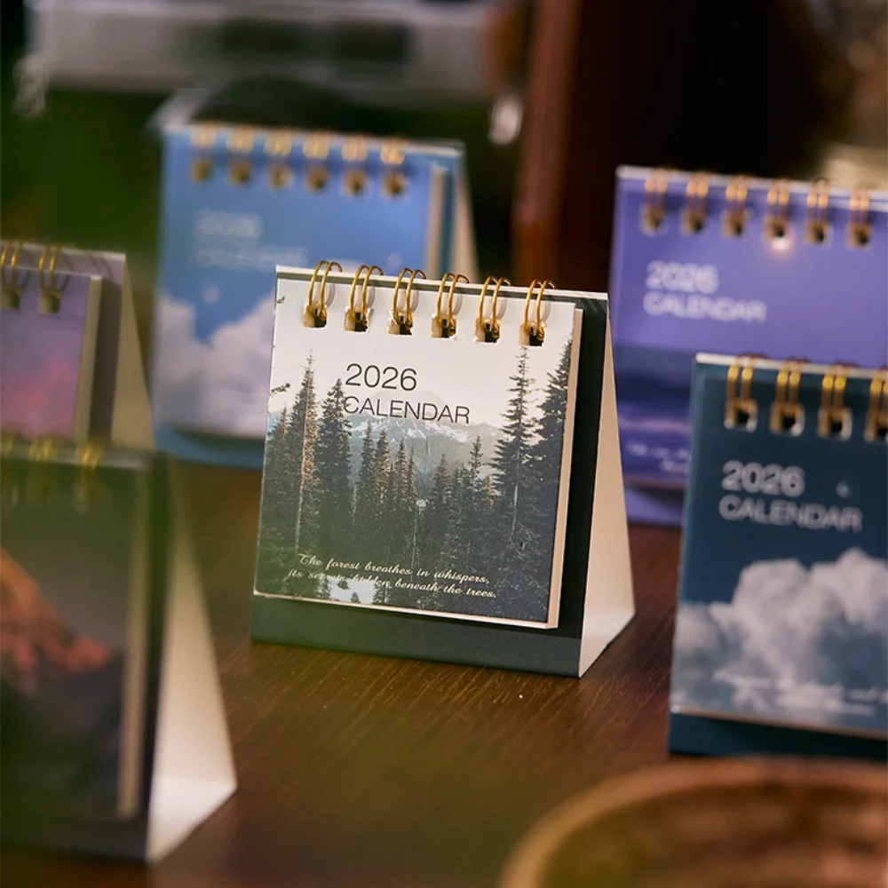 Calendrier de paysage esthétique 2026 Mini petit calendrier de bureau Portable poche quotidien mensuel planificateur Agenda bureau décor de bureau