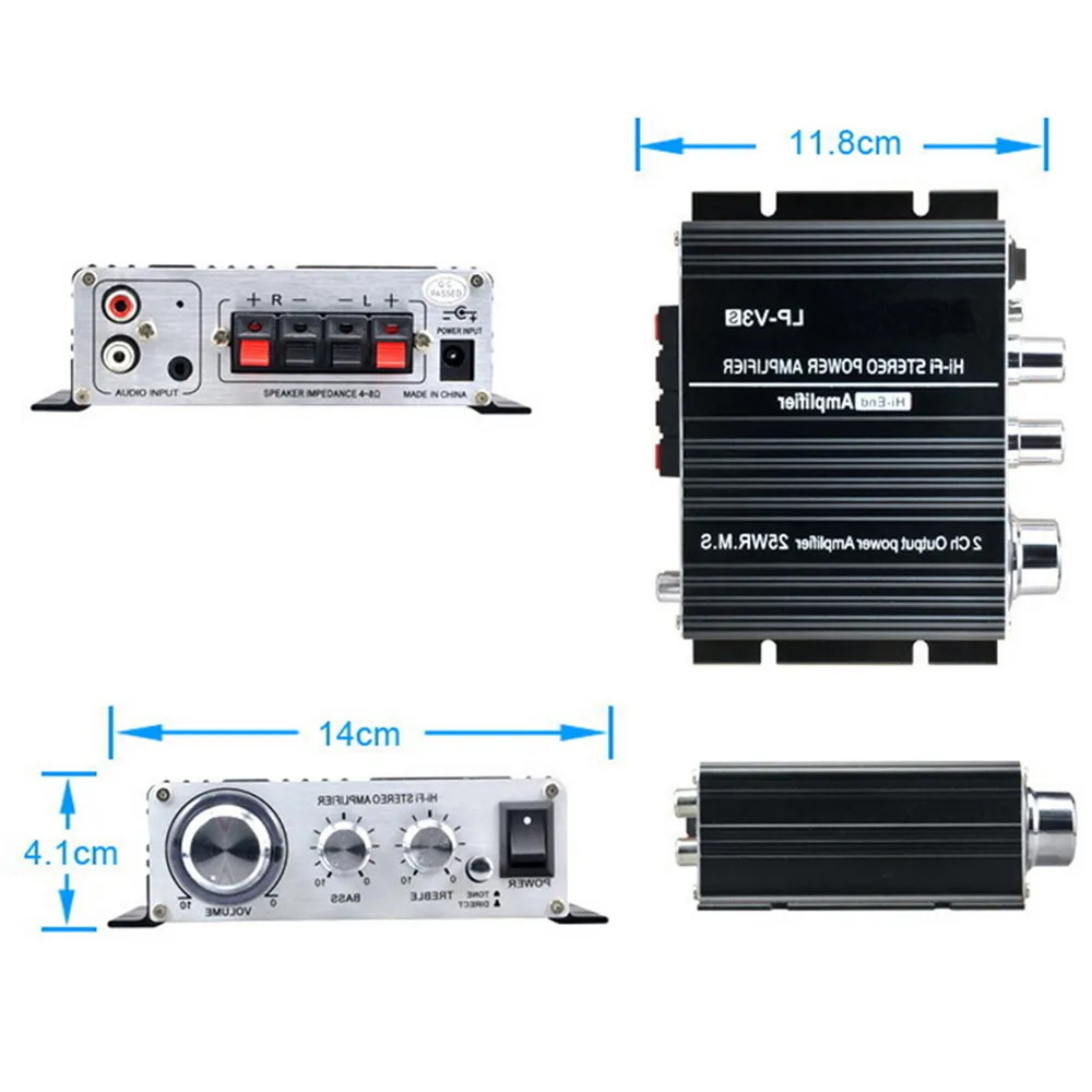 12V Mini Hi-Fi Chansons Piste LP-V3 Amplificateur Stéréo Connexion 700W Puissance 3.5mm Noir Voiture Audio Haut-Parleur Numérique MP3