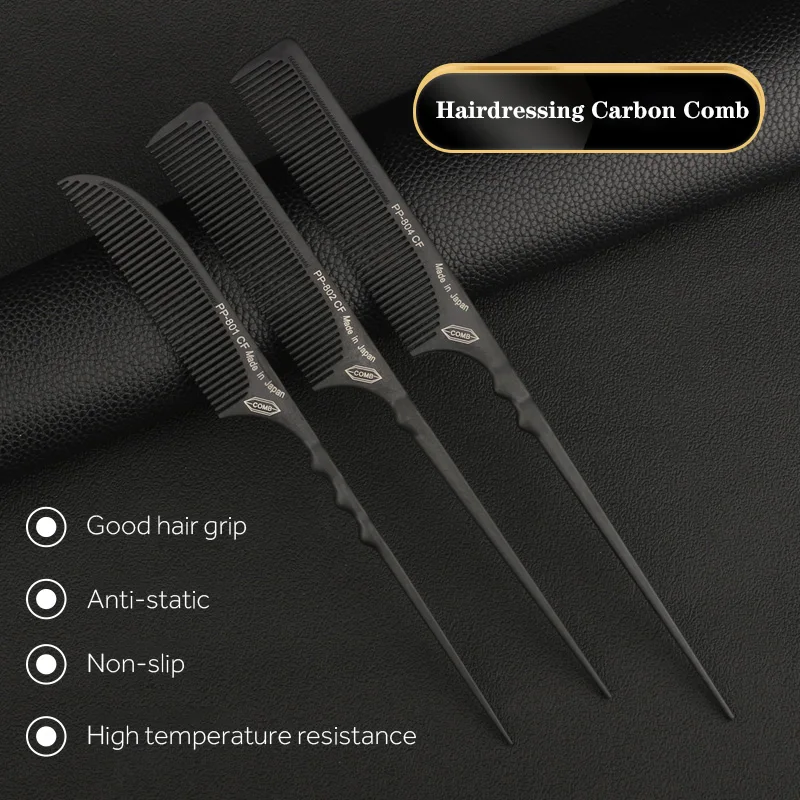 Peigne de coupe de cheveux en Fiber de carbone, peigne de barbier professionnel, résistant aux hautes températures, brosse de coiffure pour coiffeur