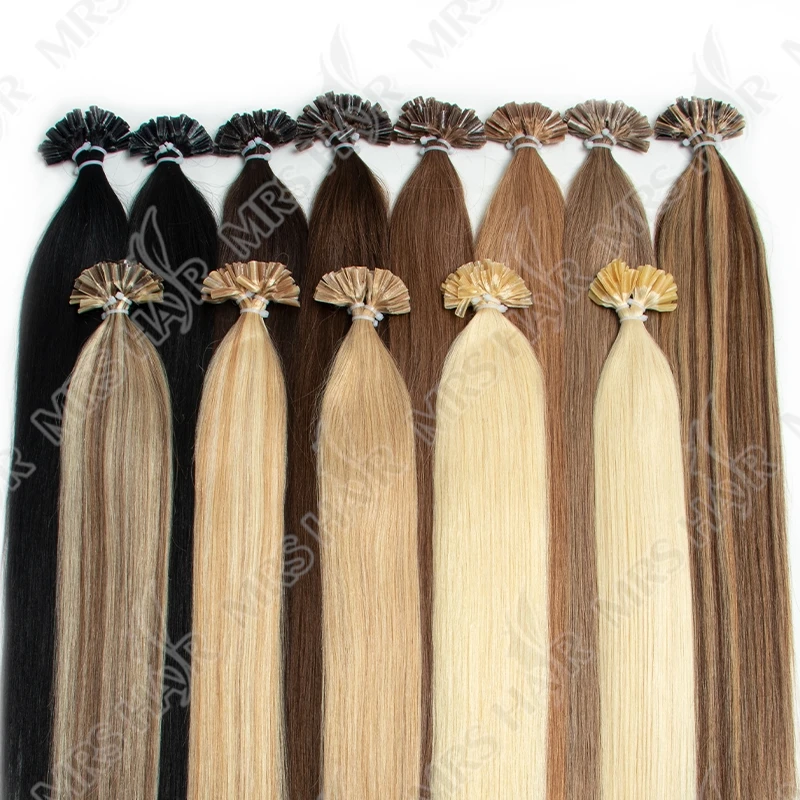 MRSHAIR U Tip Fusion Extensions de cheveux ongles conseils cheveux humains Italiana 1.5 cm de Long kératine cheveux liaisons 12 16 20 24 pouces 50 brins