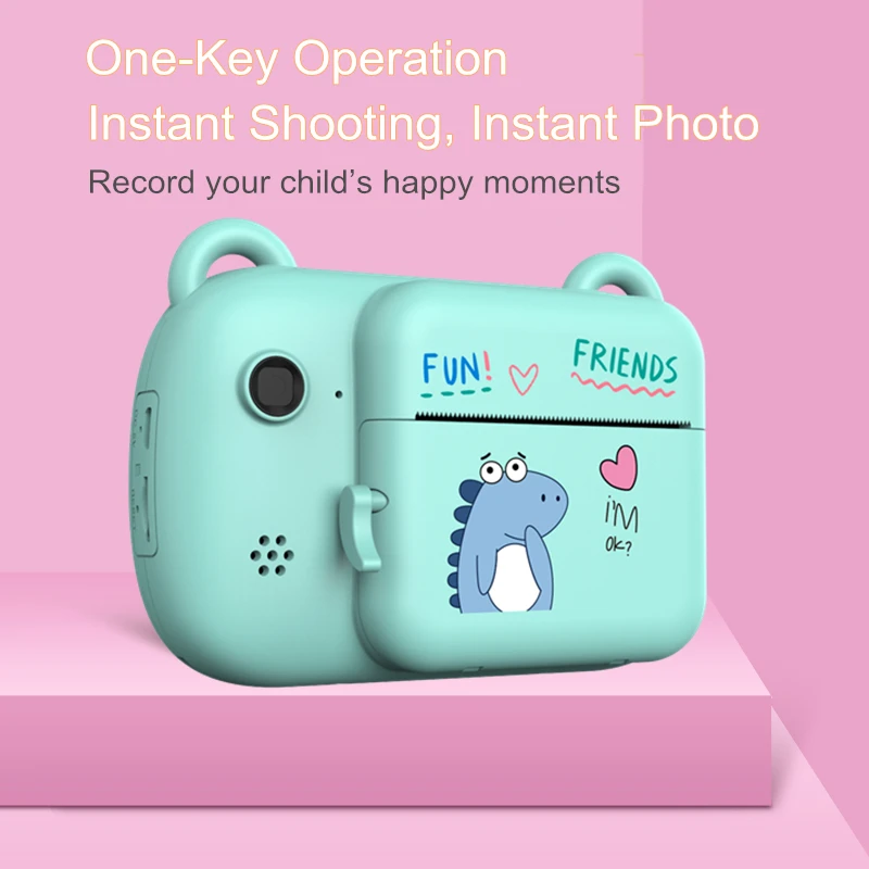 Appareil photo instantané pour enfants, mini caméra vidéo numérique pour enfants, écran 1080P, impression papier thermique + carte mémoire 32G