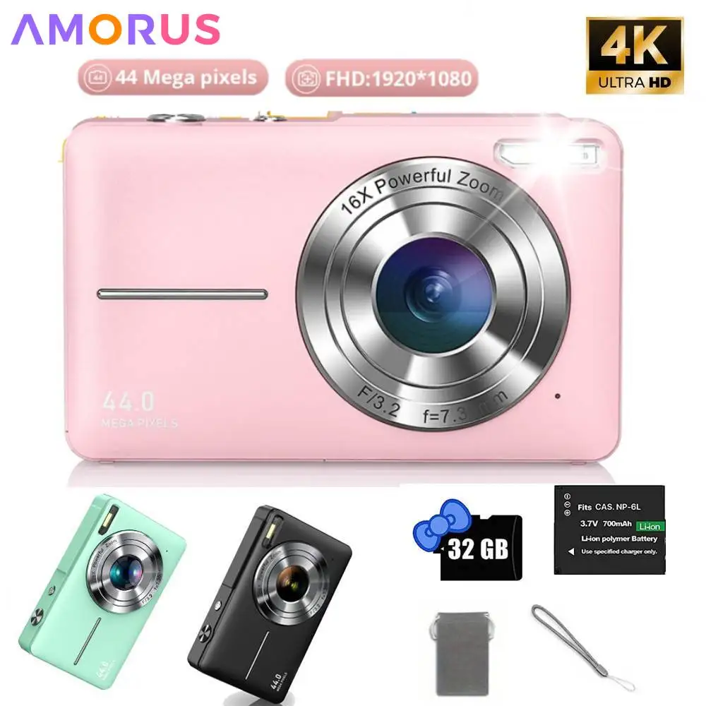 Appareil photo numérique 1080P 44MP caméra numérique Point et prise de vue avec Zoom 16X Anti-secouement CCD caméra pour enfants pour garçons filles enfants