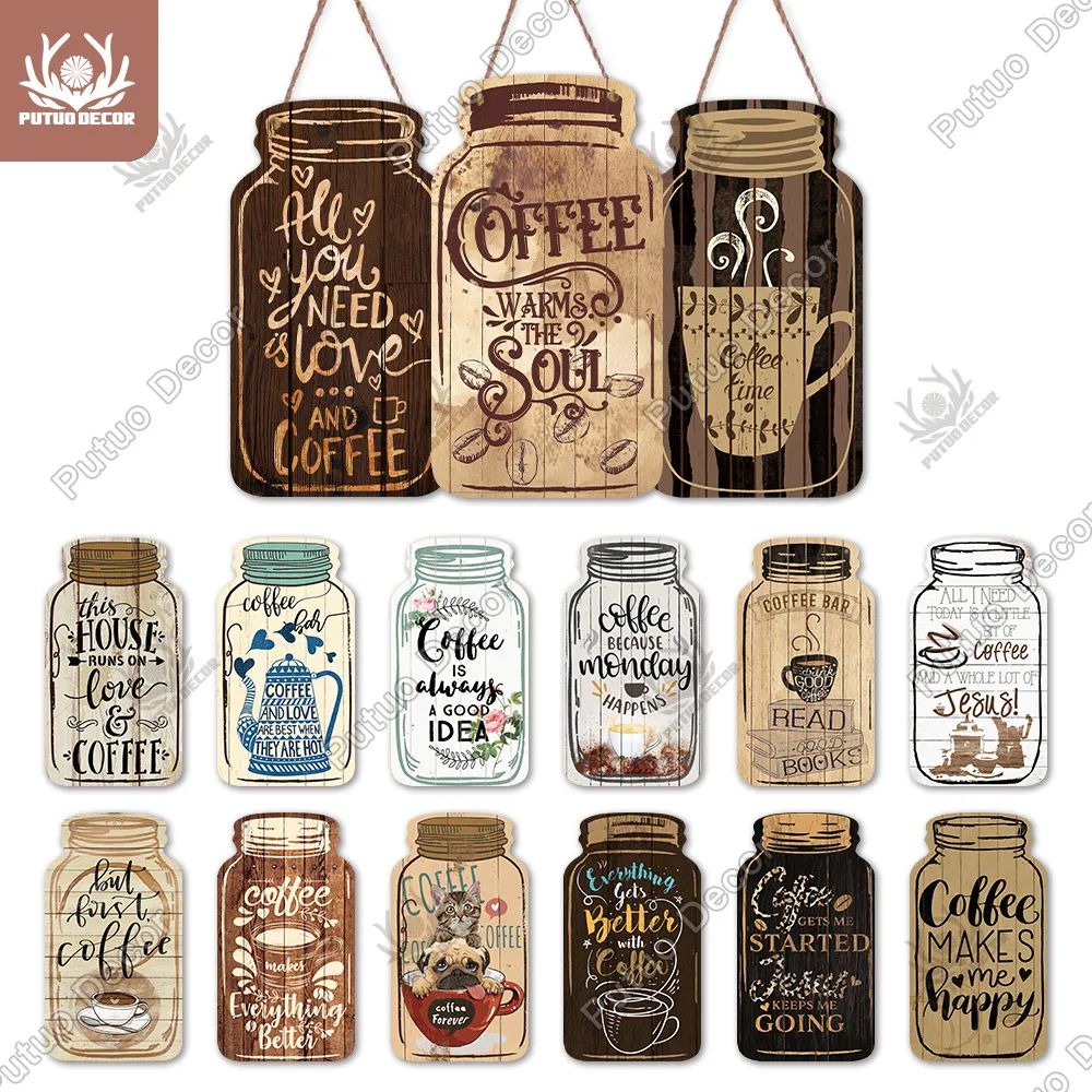 Putuo décor Plaques à café en forme de pot Mason panneaux en bois Plaque irrégulière pour décoration de café cuisine décor mural Plaque décorative