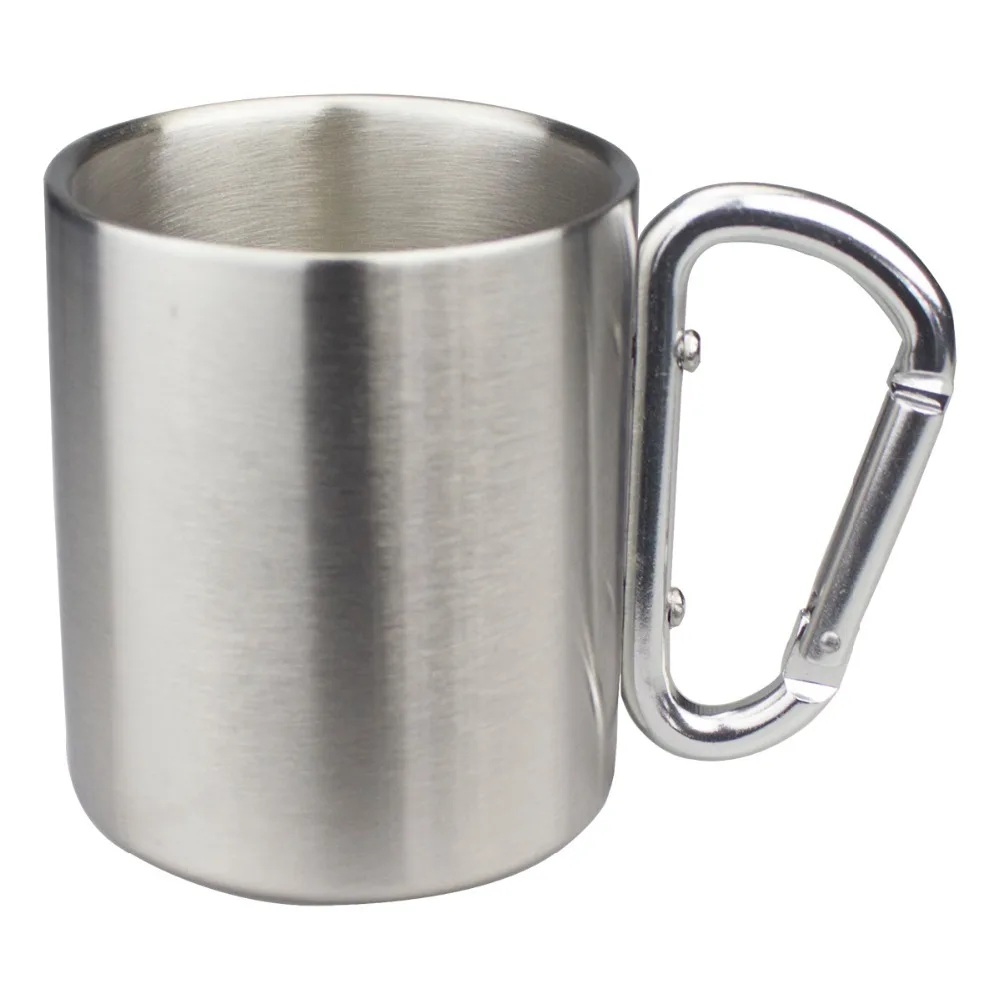 Tasse de voyage à double paroi en acier inoxydable, poignée à crochet, tasse isolante, mousqueton extérieur pour enfants, chaleur, portable, petit, pas cher