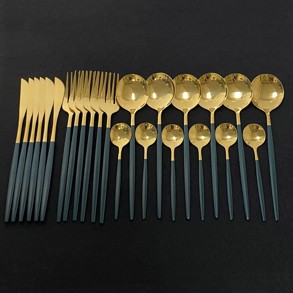 Ménagère de couverts en acier inoxydable colorés, service de table couleur or, effet miroir avec couteaux, fourchettes, cuillères, parfait pour le dîner, 24 pièces