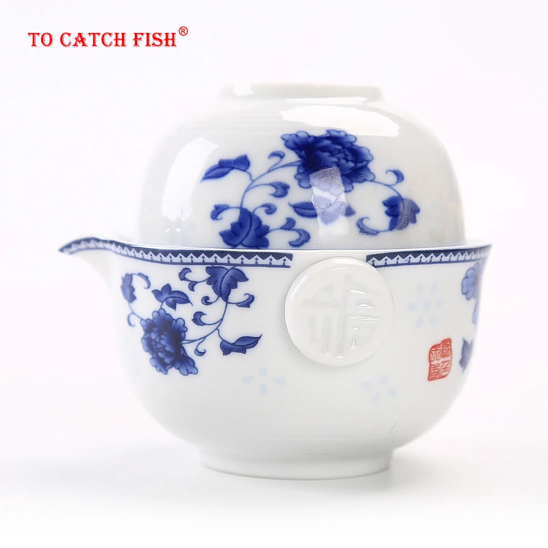 Service à thé en céramique comprenant 1 Pot 1 tasse, gaiwan élégant de haute qualité, bouilloire à théière belle et facile, théière kung fu