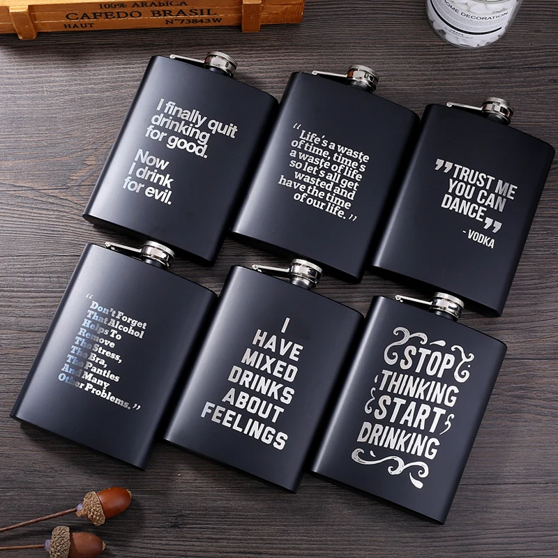 Flasque en acier inoxydable avec logo gravé au laser, d'extraction de hanche, bouteille de whisky, certifiée, sur mesure, cadeau en métal noir 256, 8 onces