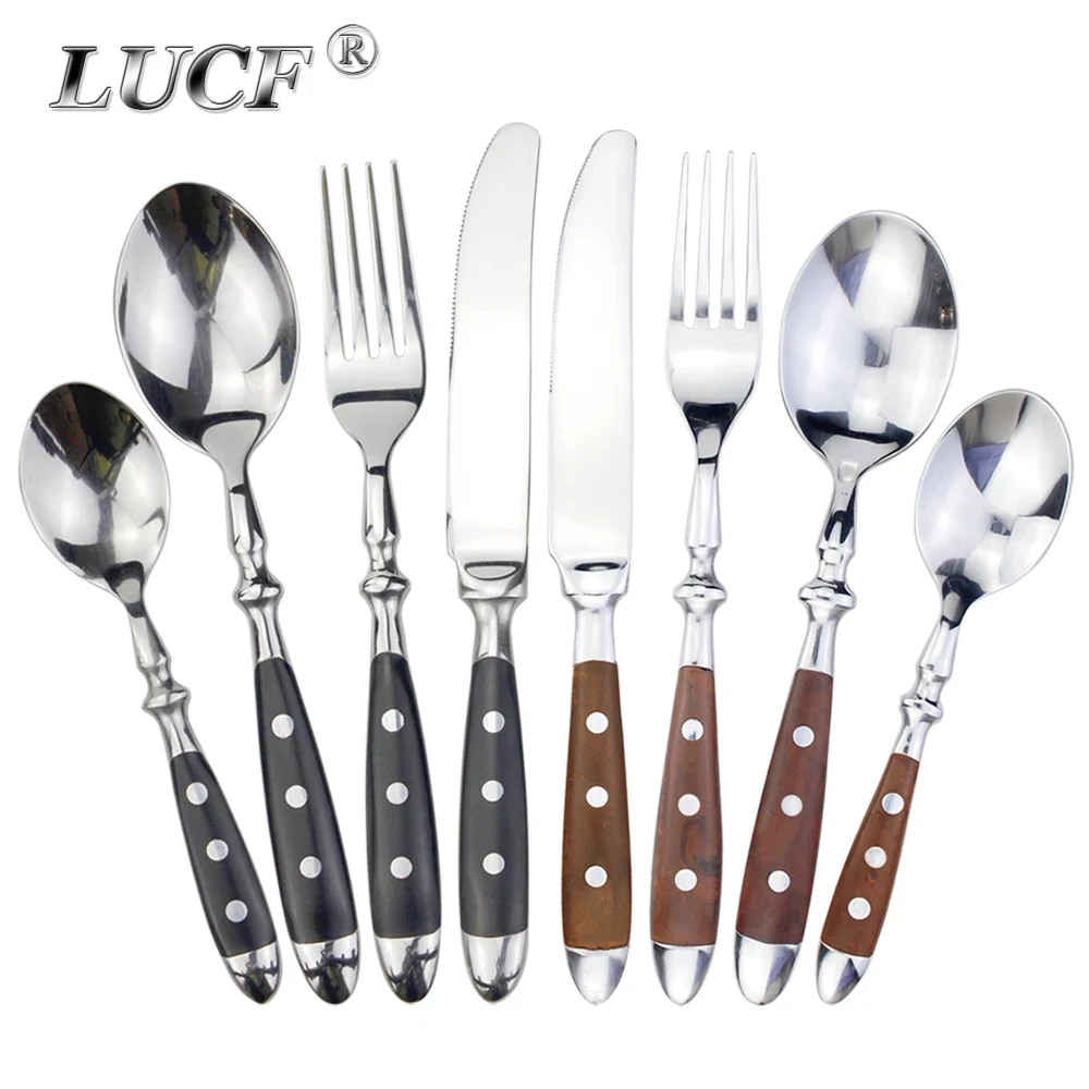 LUCF-Couverts Occidentaux Classiques et Élégants en Résine, Style Poignée en Acier Inoxydable, Ensemble 4 en 1, Ustensiles Délicats, Vaisselle pour la Maison