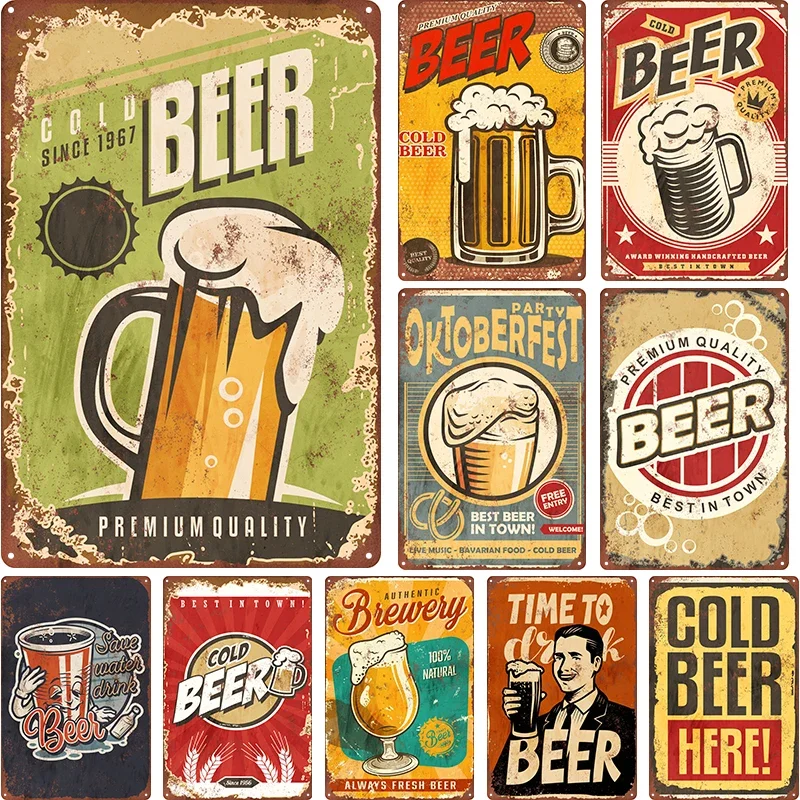 Enseigne en métal vintage "Cold Beer", 20x30cm, 7,87x11,81 ", reétiquettes, décor de bar rétro pour bière, Afnoronados, 1 pièce