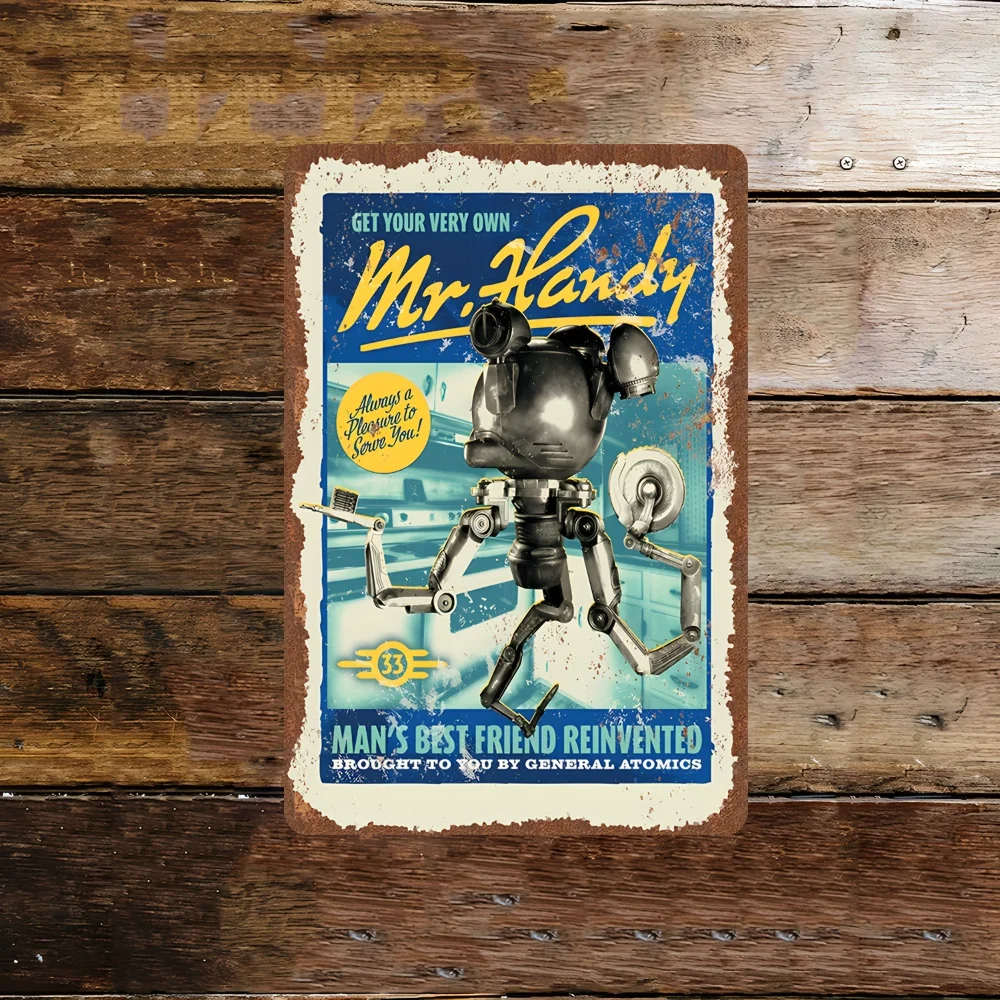 "FallOut" Monsieur Panneau métallique pratique en étain, Art mural Vintage avec Design rétro, décor imperméable, anti-poussière et rustique pour la cuisine