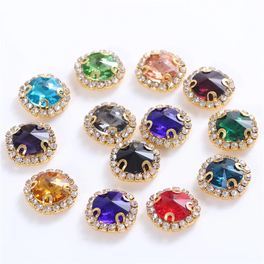 Nouveau 10 pièces verre rond coloré coudre sur strass avec griffe de dentelle dorée couture cristal Flatback rouge strass pour couture