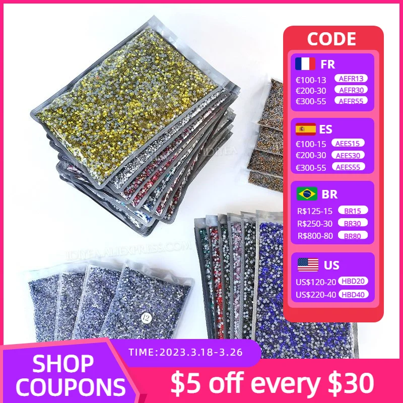 Gros paquet en vrac Hot Fix Strass SS16 SS20 SS30 dos plat cristaux Strass paillettes pierre pour bricolage tissu vêtement