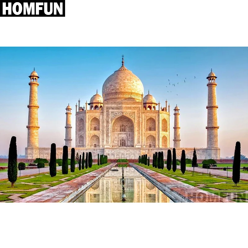 HOMFUN plein carré/rond perceuse 5D bricolage diamant peinture "Taj Mahal Religion" broderie point de croix 5D décor à la maison A01138