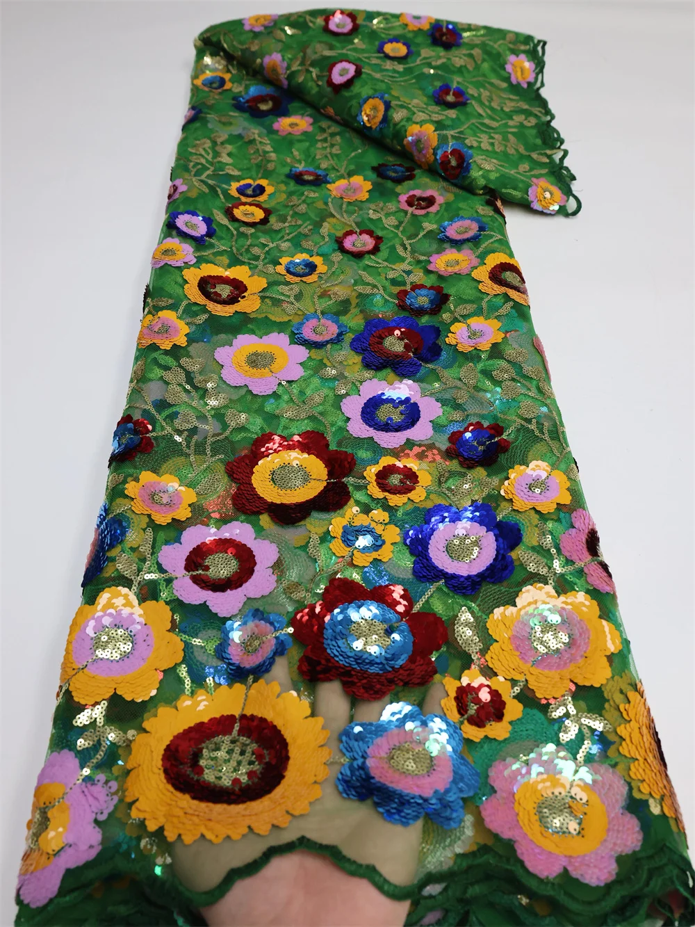 Tissu africain en dentelle perlée lourde, 5 Yards, Tulle nigérian à paillettes de haute qualité, matériel 3D pour mariage, 2025