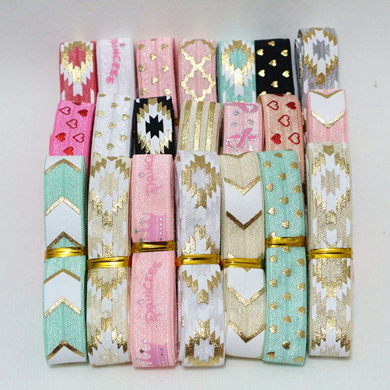 Ruban élastique imprimé FOE, 5 mètres/lot, 5/8 ''(16MM), bande extensible pliable, artisanat de bricolage pour vêtements, matériel de bandeau pour bébé