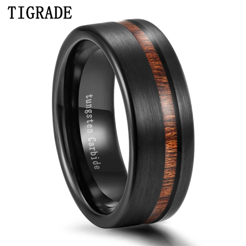 Tigrade bague noire hommes avec ligne de bois bague en carbure de tungstène 8mm Cool pour bijoux de fête marque sombre gothique aneis hombre en bois