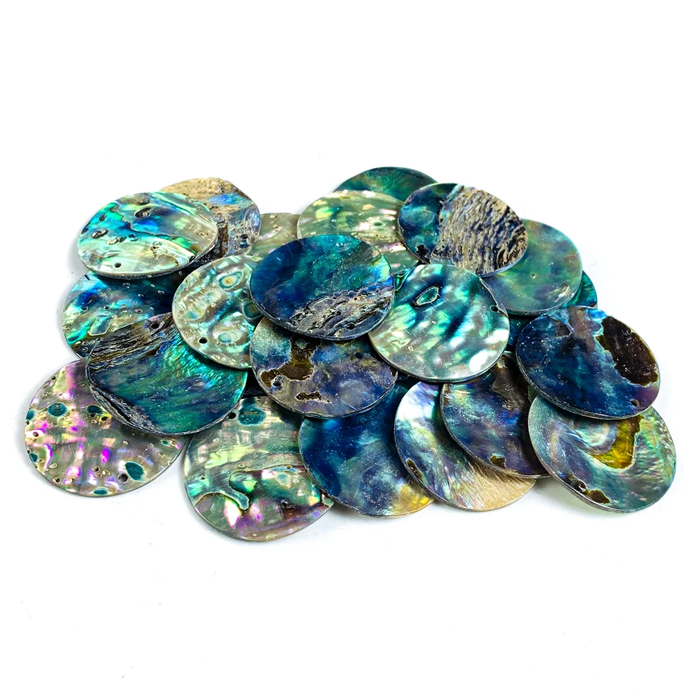 Pendentifs en coquillage d'ormeau naturel, 2 pièces, breloques rondes, flocons de coquille, poli à la main, accessoires de bijoux, bricolage, fabrication de boucles d'oreilles et de colliers