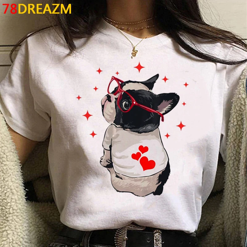 T-shirt imprimé bouledogue français Bull Terrier, streetwear, kawaii, grunge, blanc, japonais, 600