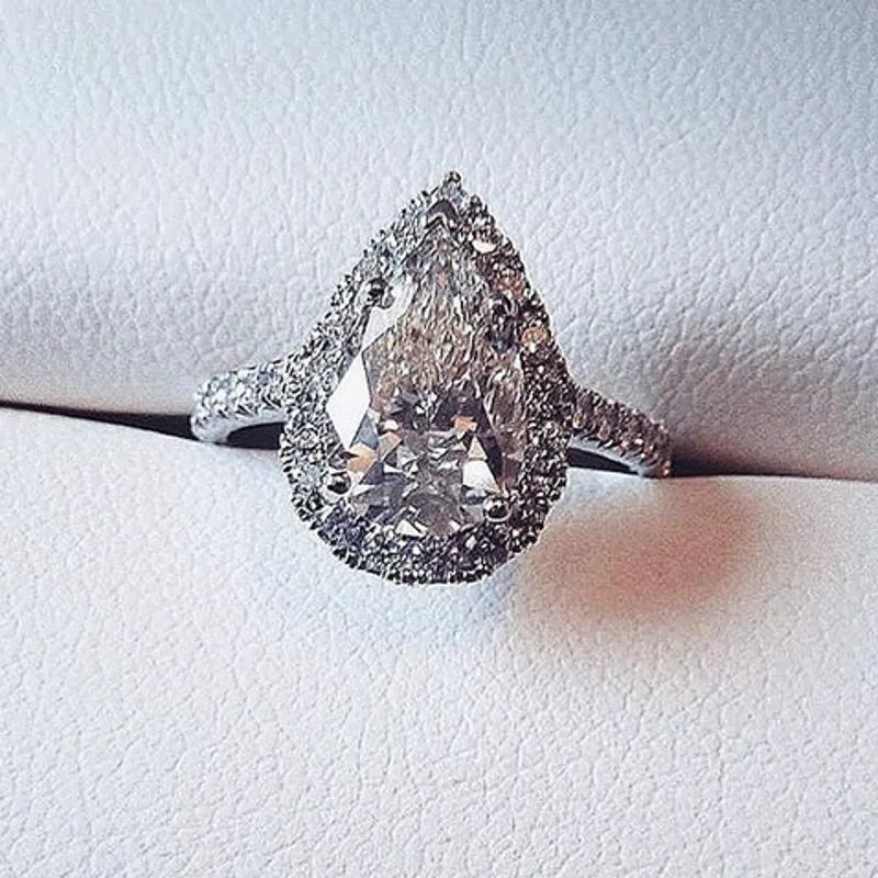 Bague élégante en argent regardé 925 pour femme, grosse goutte d'eau, matiques en pierre, promesse d'amour, cadeaux de la fête de Léon