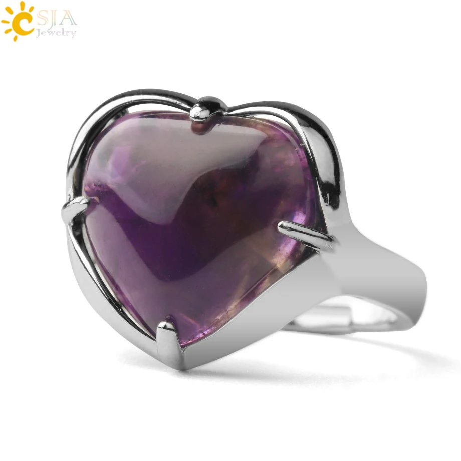 CSJA – bague en cœur d'amour en pierre de cristal pour femmes, couleur argent, pierre naturelle, bagues réglables, fiançailles, mariage, bijoux de mariée bijoux femme bague femme tendances 2022 G691