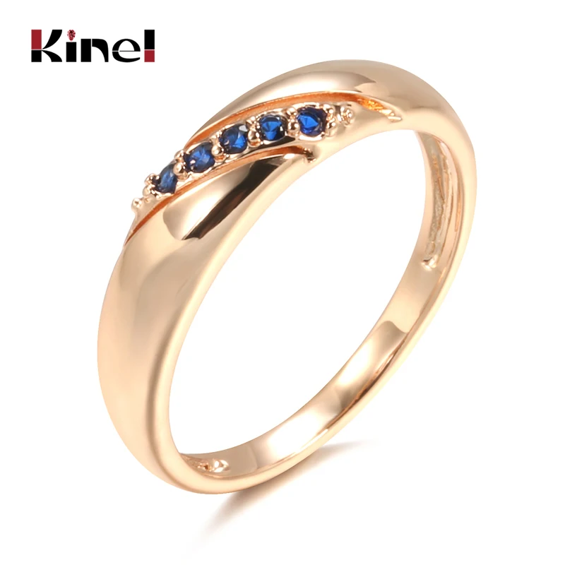 Kinel – bague de luxe Vintage en Zircon naturel bleu pour femmes, bague de mariage ethnique en or Rose 585, bijoux élégants et simples, 2021