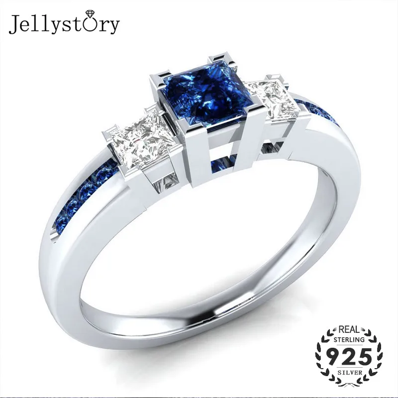 Jellystory-Bague Classique en Argent 925 pour Femme, Bijoux avec Saphir, Émeraude, Pierres Précieuses, Cadeau de Mariage, Taille 6-10, Vente en Gros