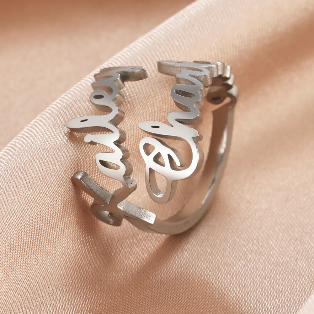 Teamer – bagues personnalisées à Double nom, en acier inoxydable, ouvertes et réglables, pour Couple, cadeau de saint valentin