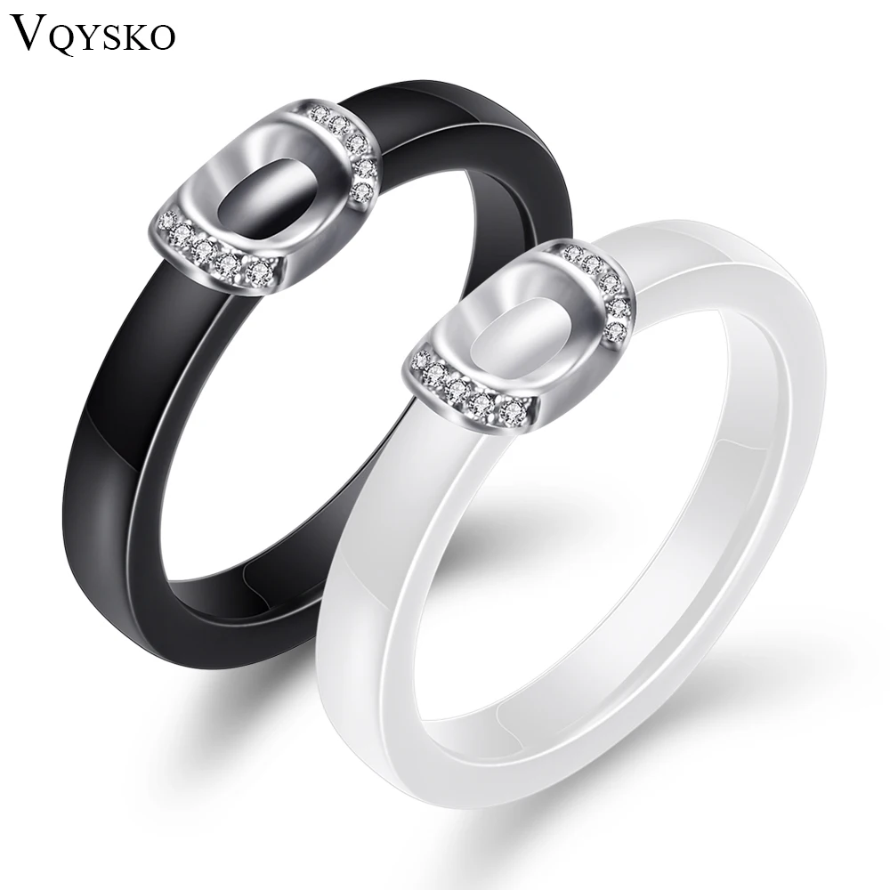 Bagues en céramique noir et blanc pour femmes, Zircon cubique, en acier inoxydable, bagues de fiançailles, de mariage, d'amour élégantes, bijoux en céramique