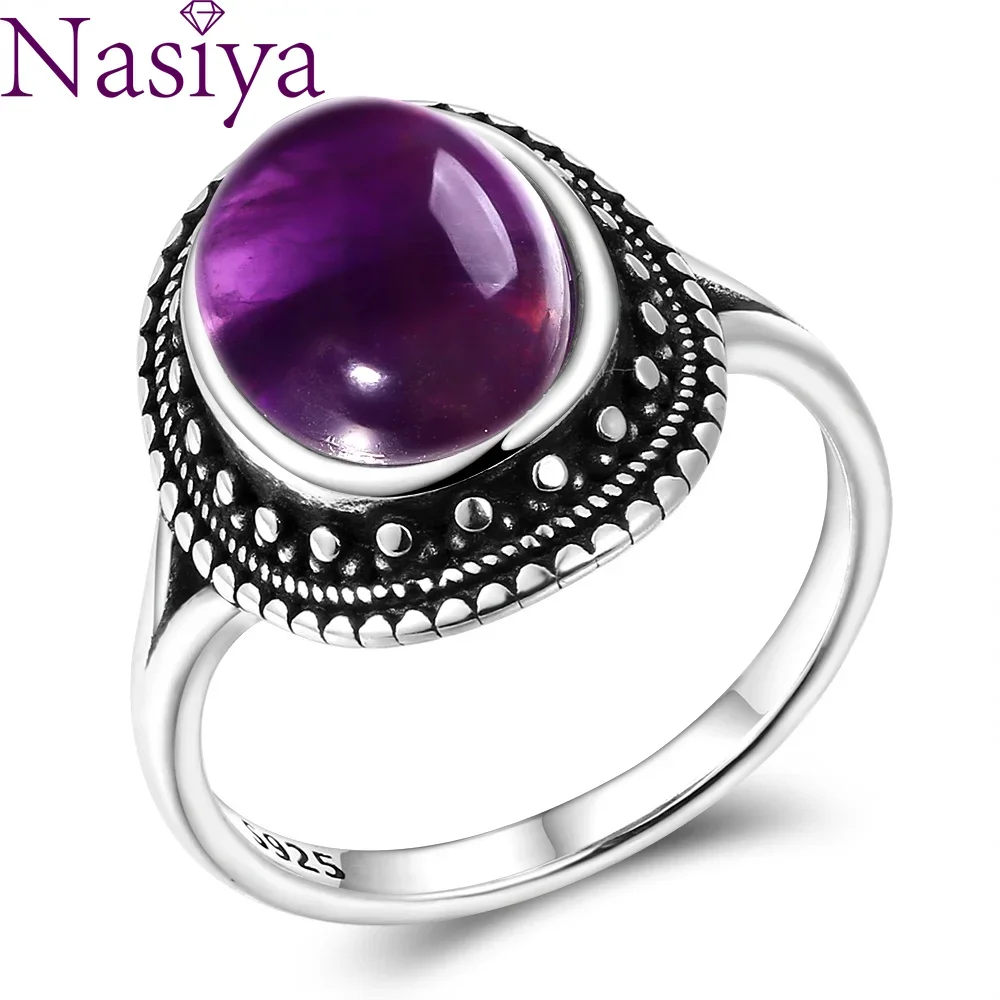 Bagues en argent 925, améthyste naturelle, pierres précieuses, pour femmes, bandes de mariage, cadeau d'anniversaire, bijoux fins