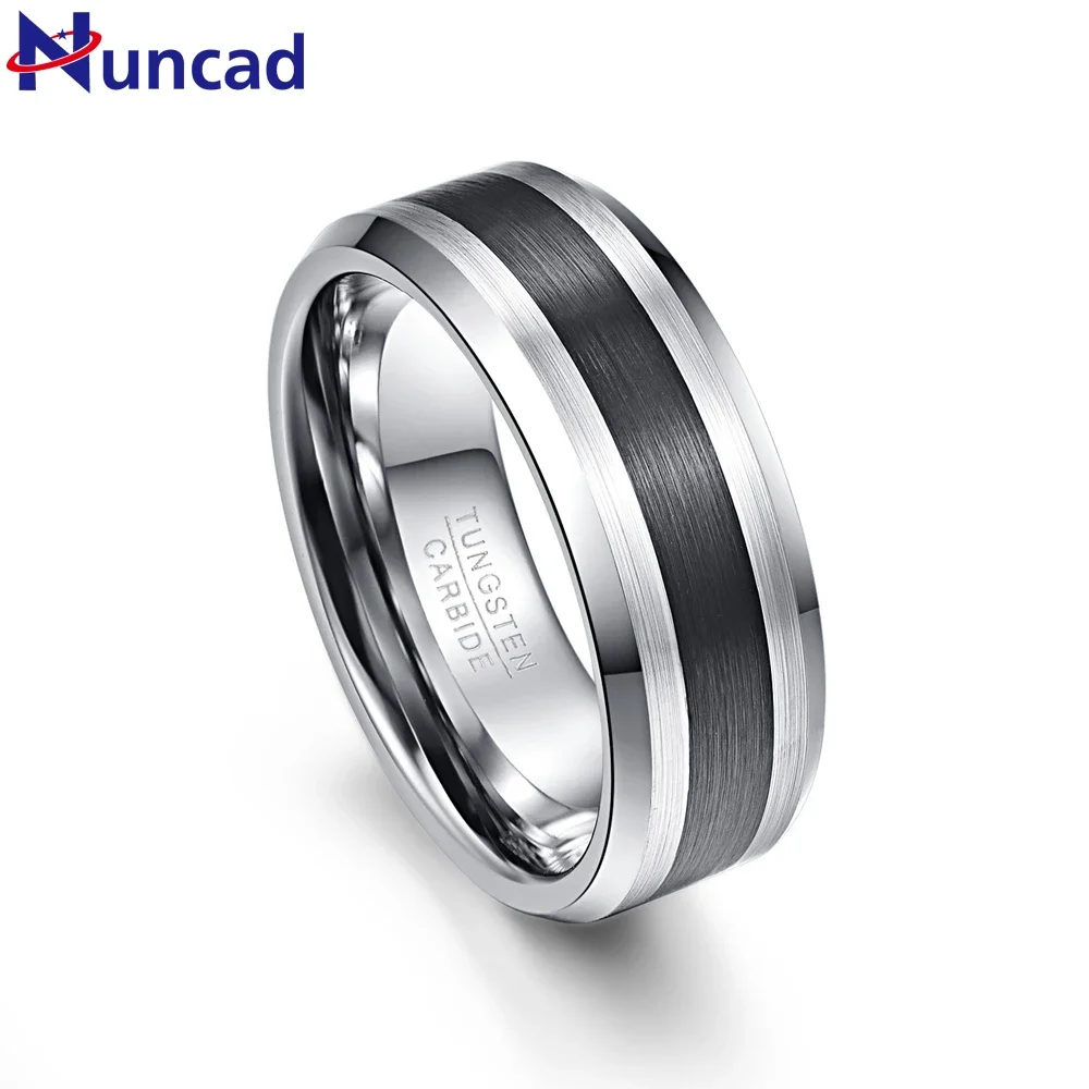 NUNCAD-Bague en carbure de tungstène pour homme, finition brossée, bord biseauté central noir, mariage, fiançailles, 8mm, T020R