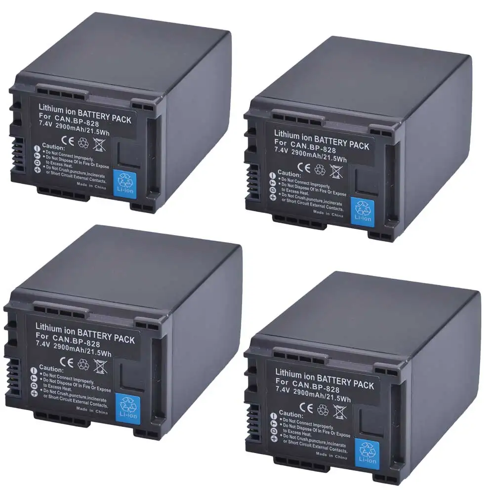 4 Batteries de caméra BP828 2900, BP-828 mAh, pour Canon VIXIA GX10, XF400, XF405 HFG20, HFG30, HFG40, HFM41, HFM400, HFS21, HFS30