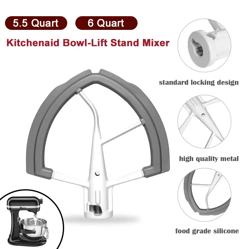 Batteur à bord flexible pour batteur sur socle Kitchenaid 5,5/6 litres, fixation des mélangeurs Kitchenaid, palette de batteur plate avec flexible