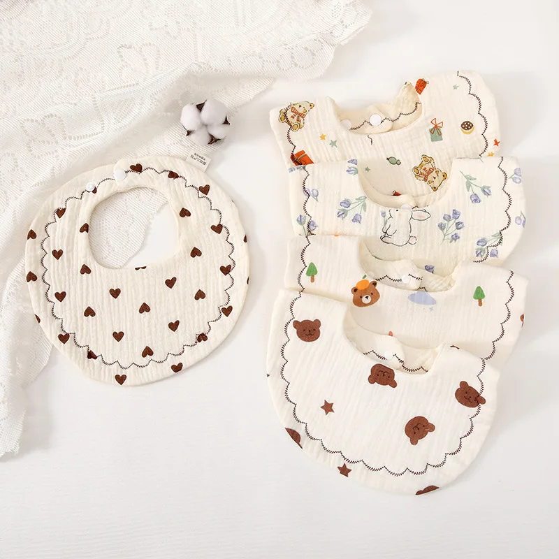 NONE Bavoir imprimé bave pour bébé, serviette de salive en coton, bavoirs respirants unisexes pour nouveau-né, Everths, 4 pièces