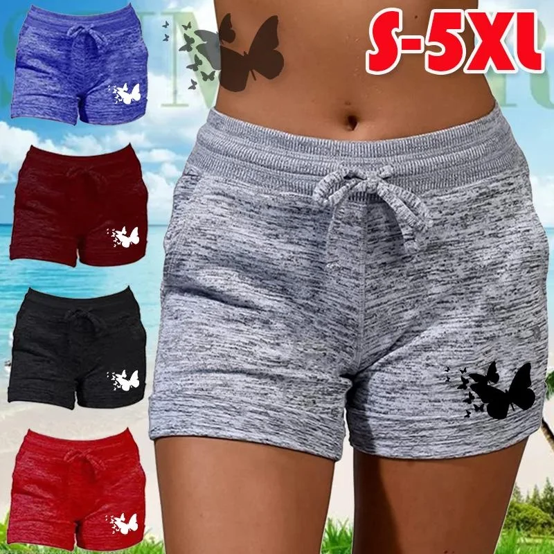 Short imprimé papillon pour femme avec poches et cordon de serrage de proximité, taille haute, sport, extensible, taille élastique, yoga, course à pied