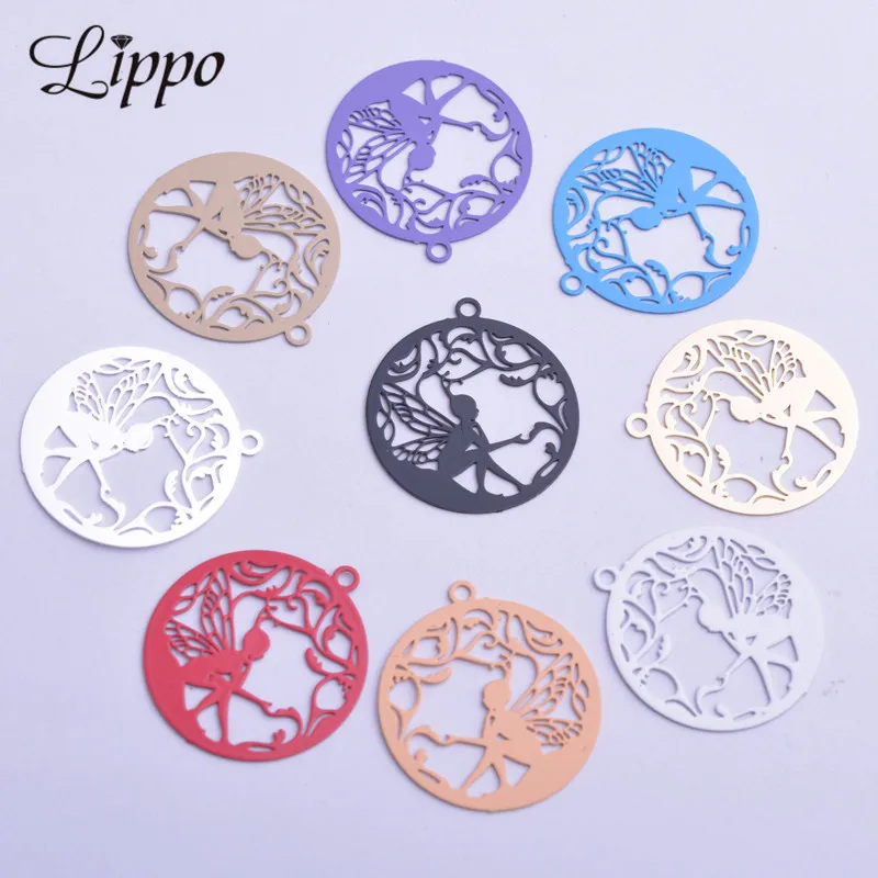50 pièces AC11677 20x22mm breloques d'ange rondes ailes filles pendentif DIY boucles d'oreilles bijoux fournitures