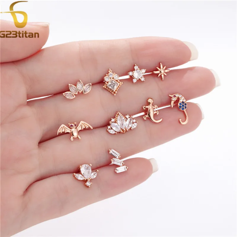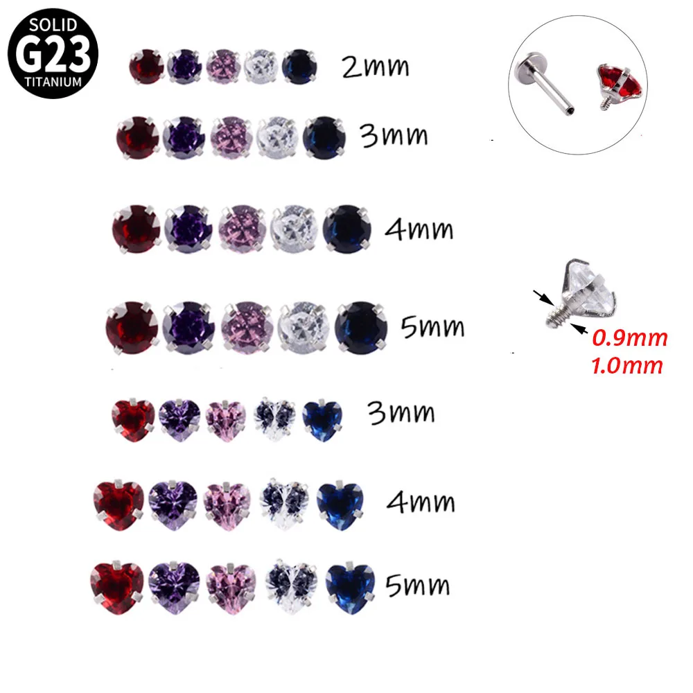 10 pièces titane CZ haut pour Labret lèvre goujon Zircon composants filetés internellement pour Prong Gem Monroe Tragus Helix Piercing d'oreille